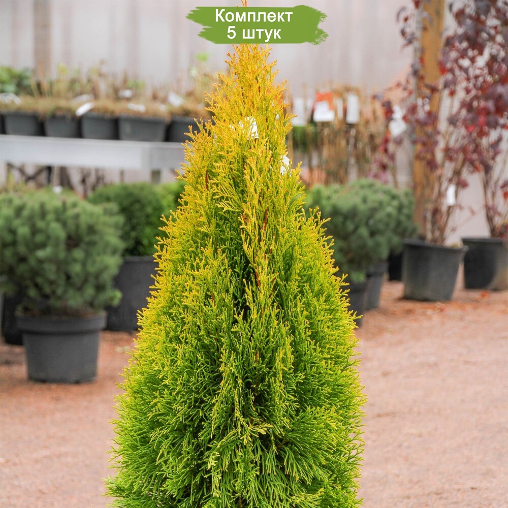 Комплект туй западных "Смарагд" включает 5 растений высотой 20-40 см по цене 4. Это выгодное предложение для любителей красивых и компактных деревьев. Туя "Смарагд" отличается элегантной пышной кроной и достигает в зрелом возрасте до 6 метров в высоту, при ширине кроны до 2 метров без регулярной обрезки. Этот вид известен своей долговечностью, ведь средний срок жизни туи составляет около 130 лет. Рост туи относительно медленный, в год она прибавляет около 15-20 см в высоту и всего 5 см в ширину. Особенно активный рост наблюдается после посадки, когда формируется крона и укрепляется корневая система.