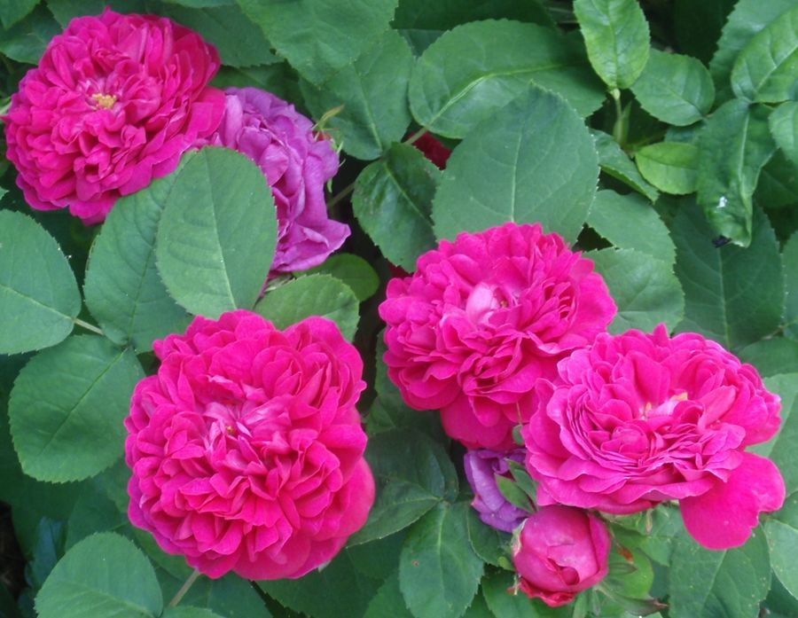 - Темная насыщенная листва хорошо оттеняет розы.