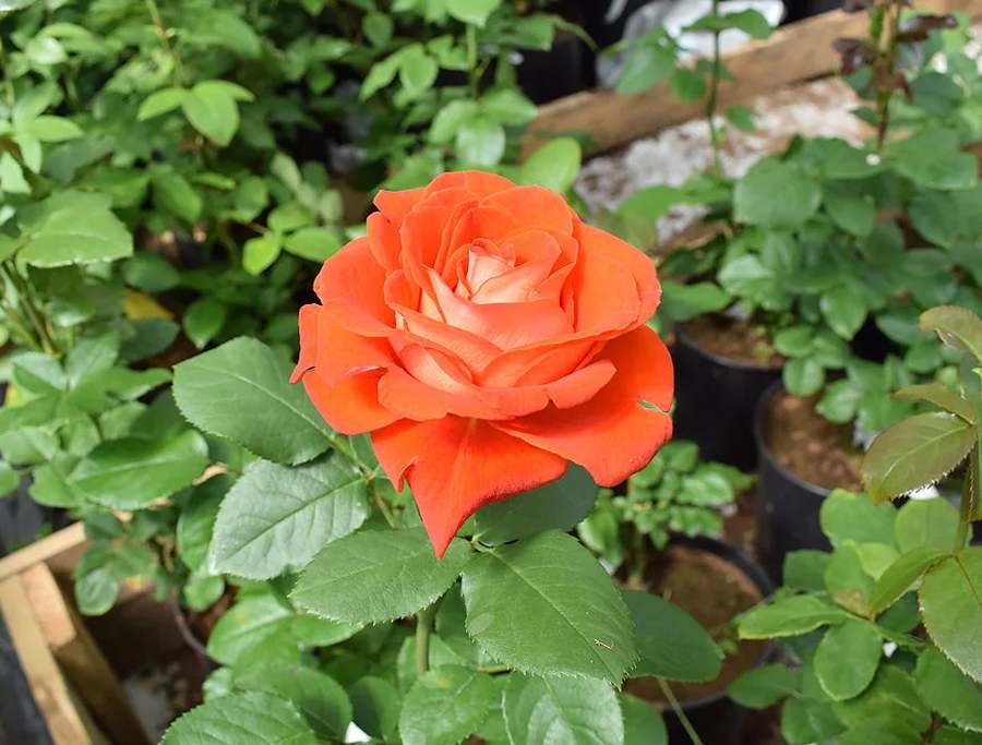 Роза Верано (Verano) – это поразительно яркий чайно-гибридный сорт, который пользуется популярностью у флористов для создания эффектных цветочных композиций. Её крупные бутоны, диаметром от 9 до 11 см, окрашены в насыщенный оранжевый цвет с легким желтым оттенком на нижней стороне лепестков. Благодаря обилию лепестков (до 40 штук), серединка цветка может оставаться частично закрытой.
